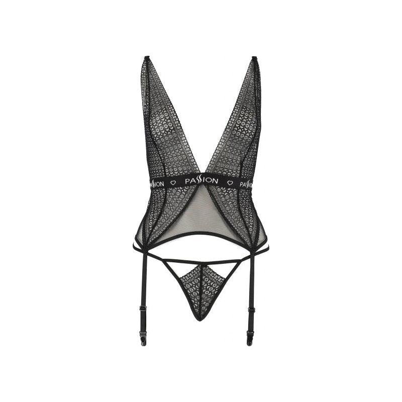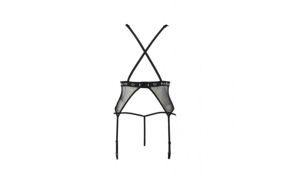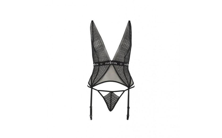 The Mirajane corset impresses with its original cut and an unusual combination of tulle, subtle mesh and elastic rubber with the Passion logo.