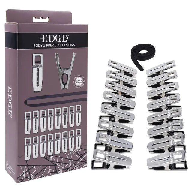 EDGE Body Zipper Clothespins Chrome Finish Set Of 16