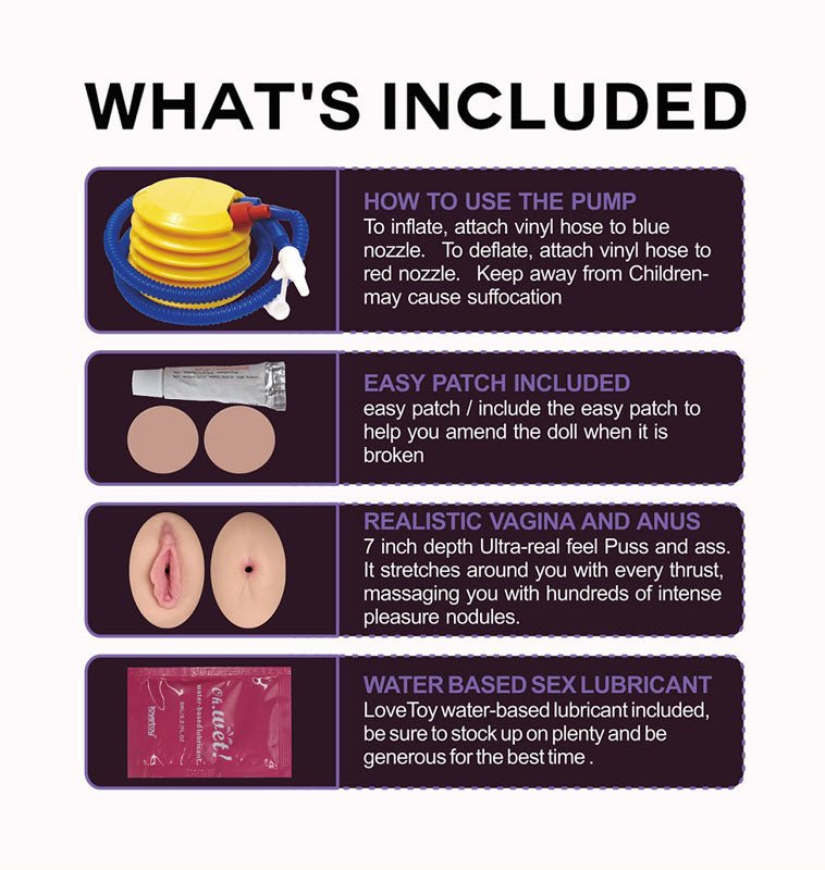 Every aspect of maintaining Victoria’s allure is simple. Your purchase includes a foot pump for easy inflation, a puncture repair kit for longevity, and a lubricant to ensure smooth interactions. Embrace each passionate moment with ease, knowing everything you need is at hand.