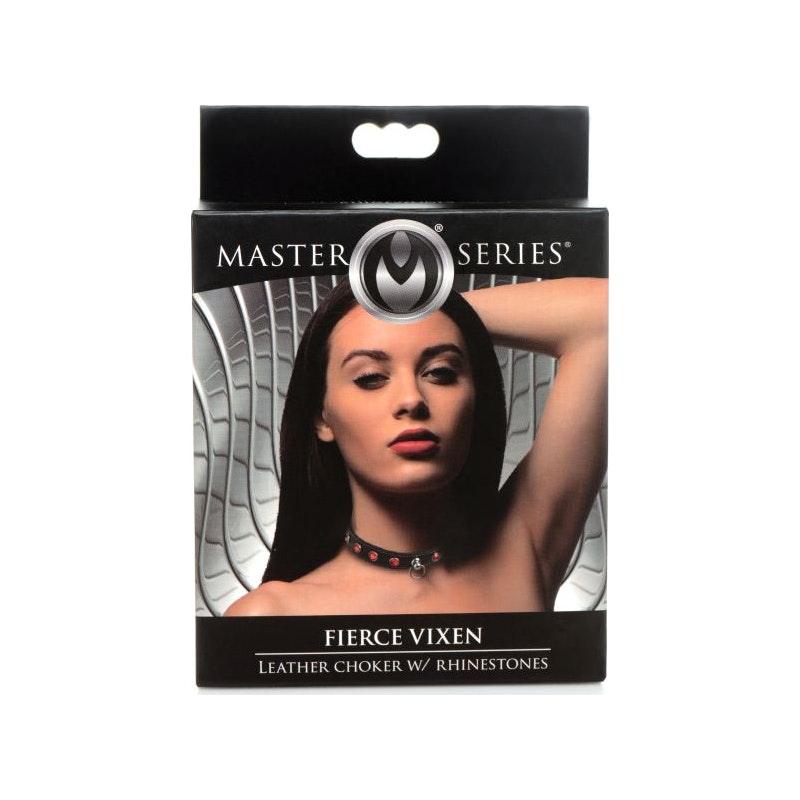 Bling Vixen Leather Choker w Red Rhinestones - Adult Toys