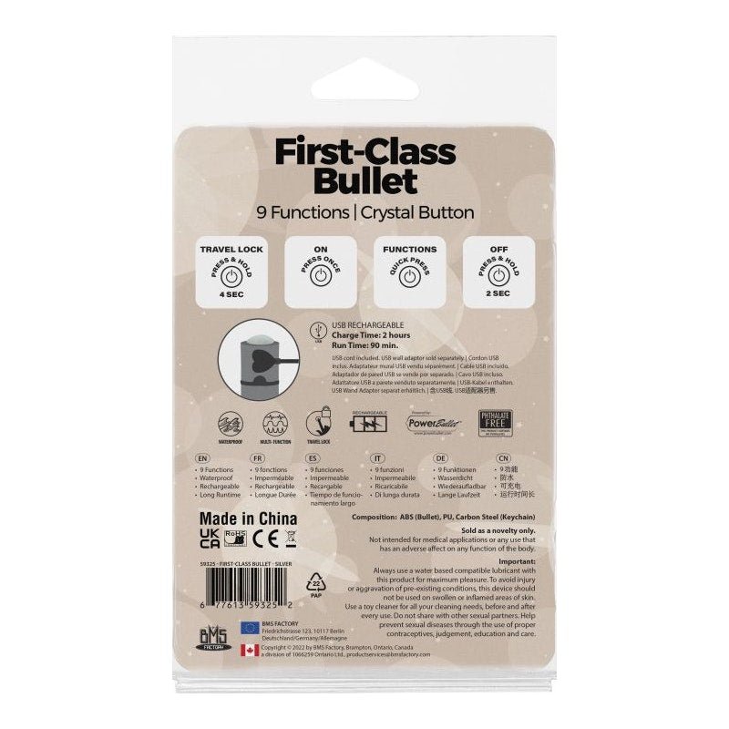 Power Bullet First Class 6cm Rechargeable w Crystal Silver