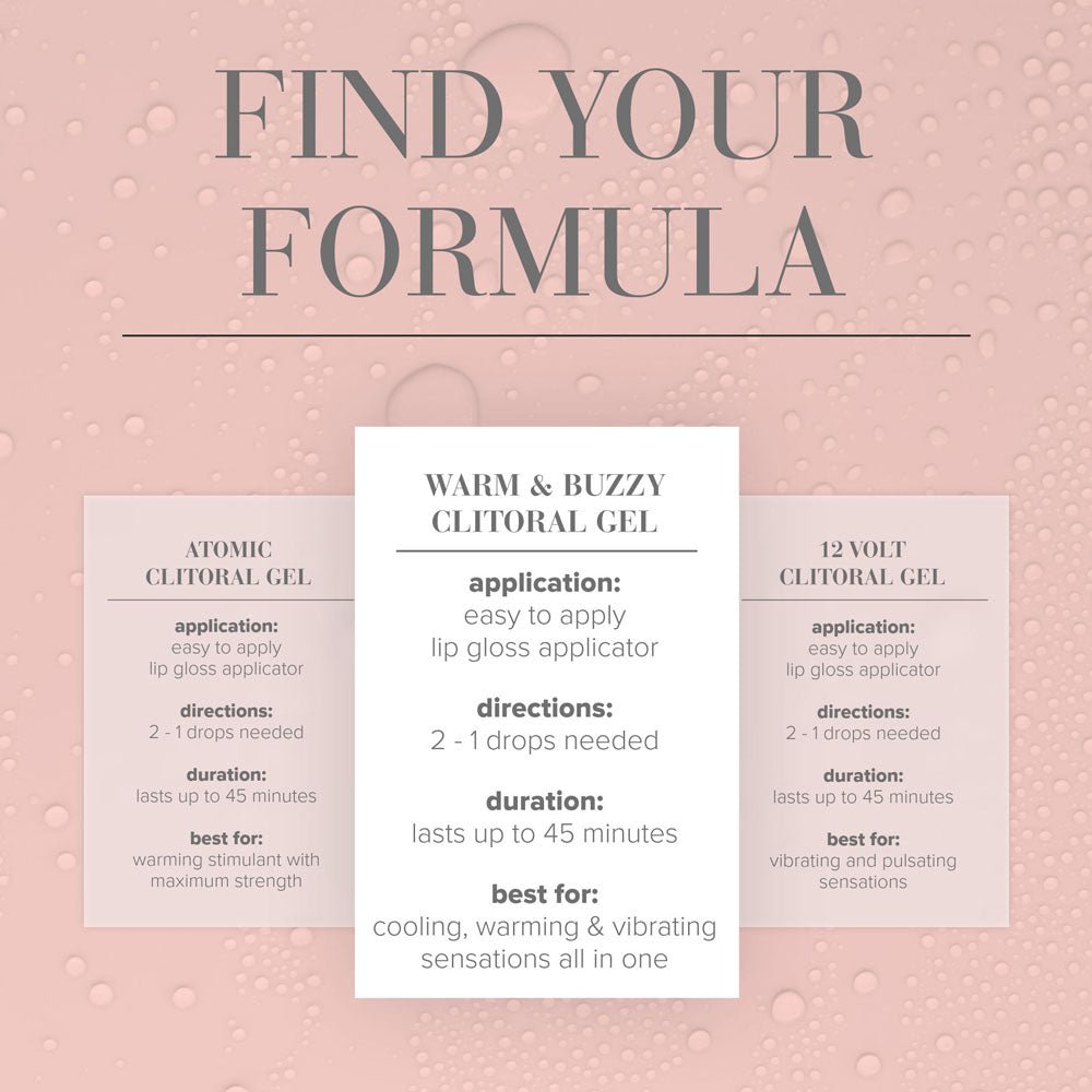 - Gently massage until the gel is absorbed. The warming effect begins quickly, followed by a subtle buzzy sensation that heightens sensitivity.
