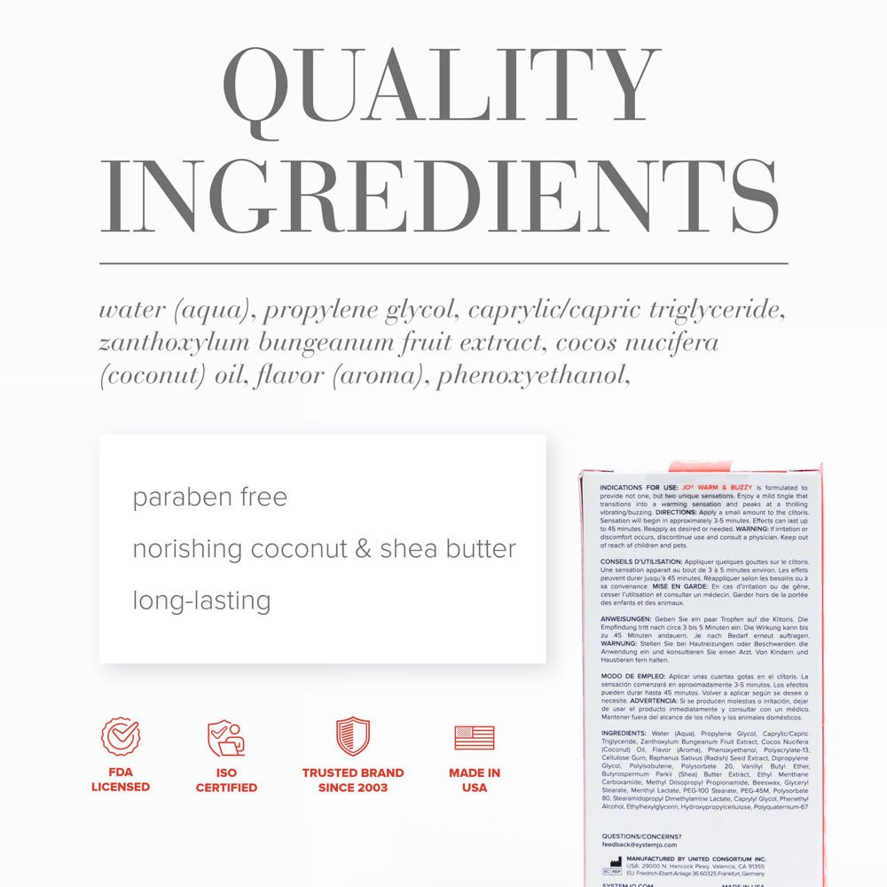 JO Warm Buzzy Clitoral Stimulant 10 Ml Warming Gel Tube delivers a precise, sensorial upgrade to intimate moments. This compact gel blends a gentle warming sensation with a buzzy tingle designed to heighten clitoral sensitivity and arousal, perfect for solo exploration or couples foreplay.
