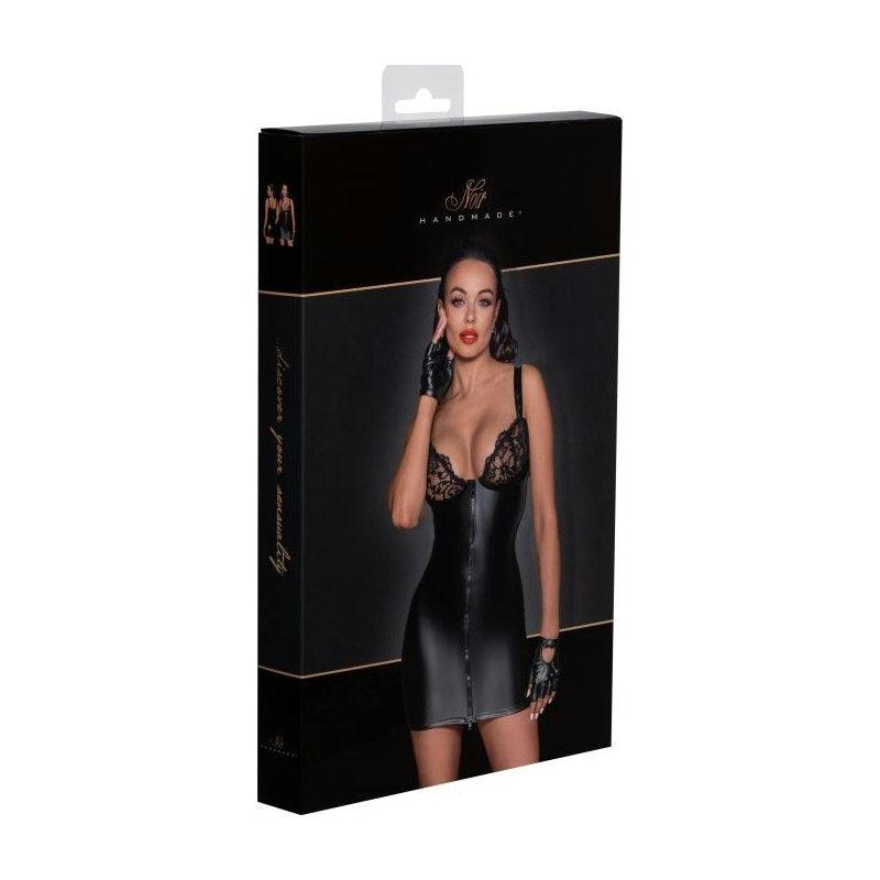 Power Wetlook Mini Dress w Lace Chest & Two Way Zipper