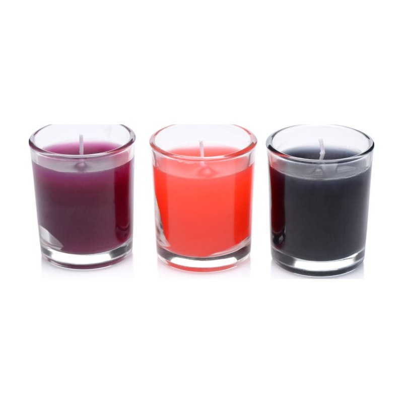 Make them writhe and wriggle as you drop hot beads of wax on their body! Experiment in some high intensity sensation play with a set of candles designed for BDSM - this trio of candles is made with a wax formula formulated for easy melting and dripping. Perfect for all BDSM skill levels to experiment and explore the world of candle play!