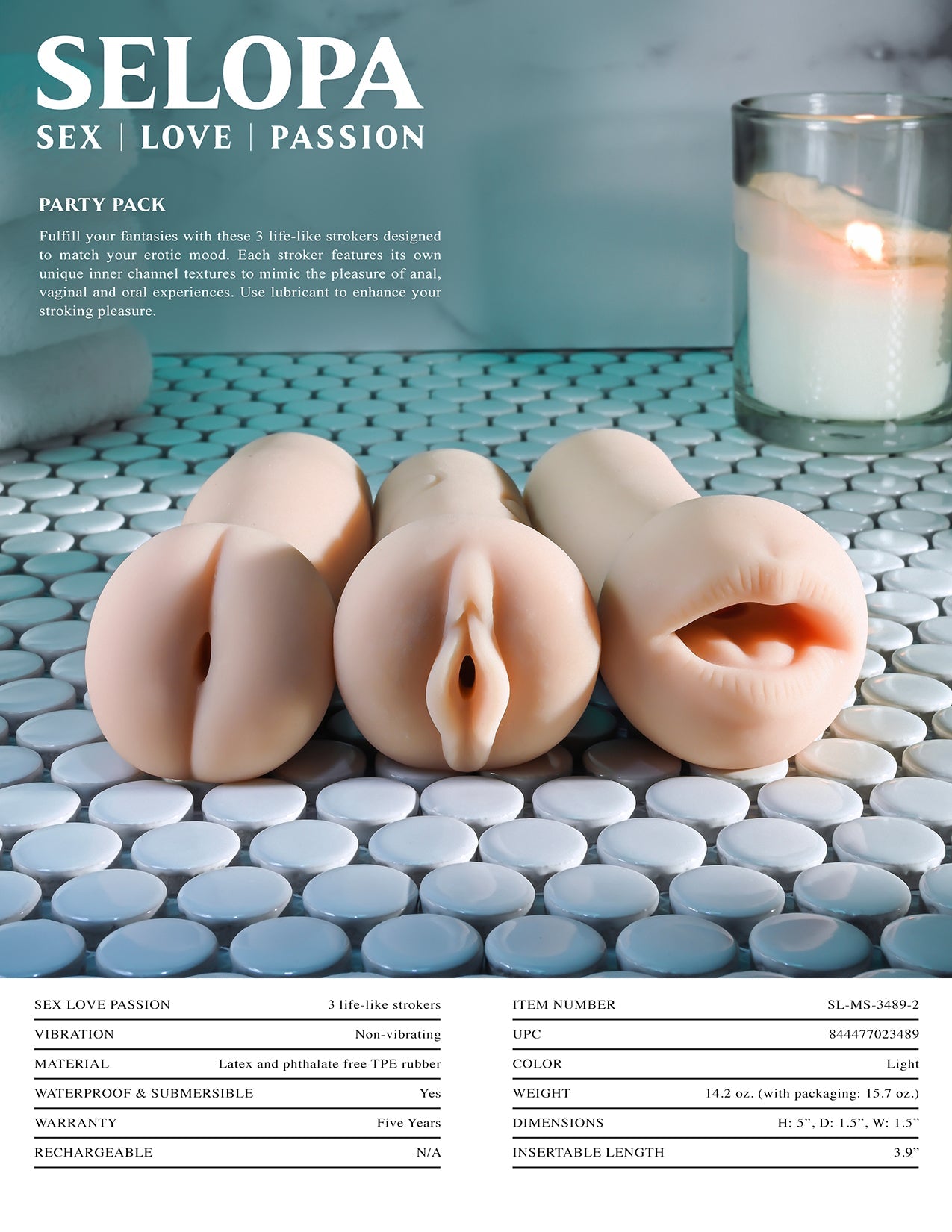 With three distinct choices, the Selopa Party Pack ensures a variety of experiences that keep every moment exciting. Irrespective of your mood, switch easily between strokers to match your fantasy. Remember, adding lubricant elevates the pleasure further, creating a smooth, gliding experience that feels just right.
