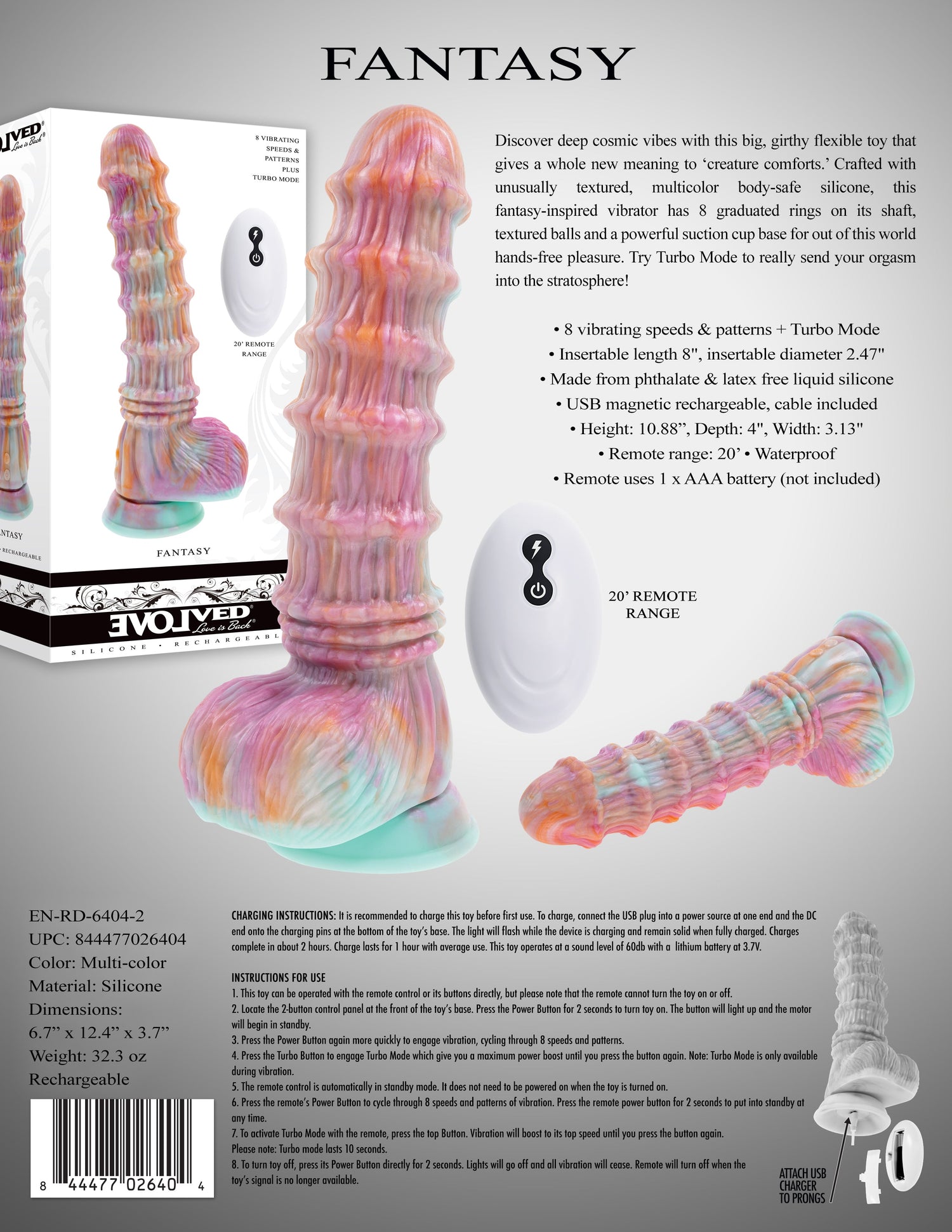 Evolved FANTASY - Multicoloured Vibrating Fantasy Dildo with Remote is backordered and will ship as soon as it is back in stock.