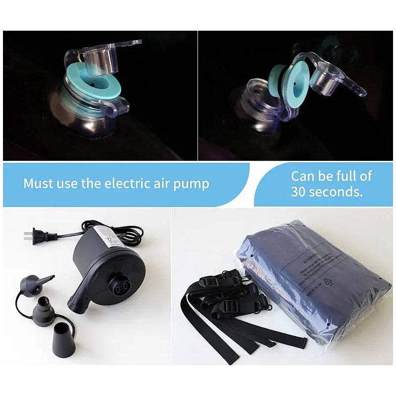The inflatable lounge uses standard inflation valves that can be accessed with all universal pumps, just squeeze the valve to deflate after use.