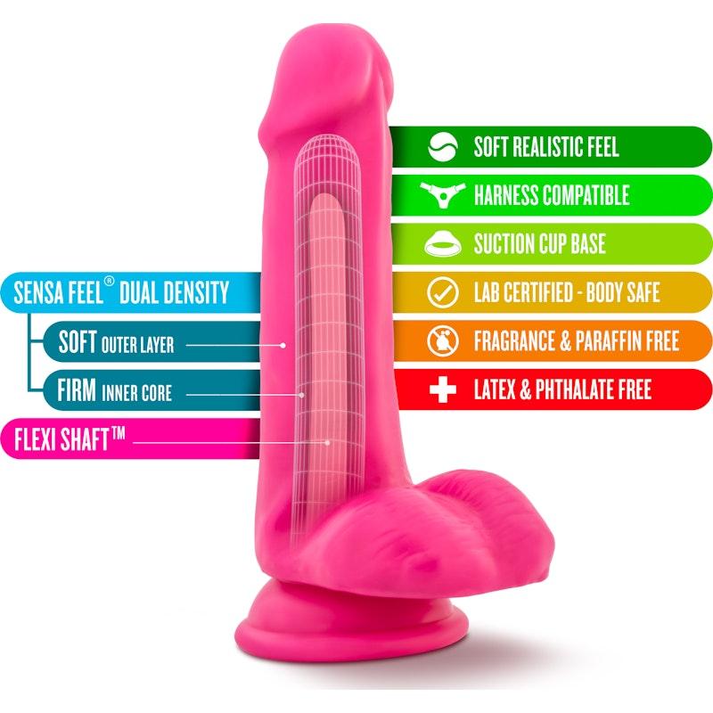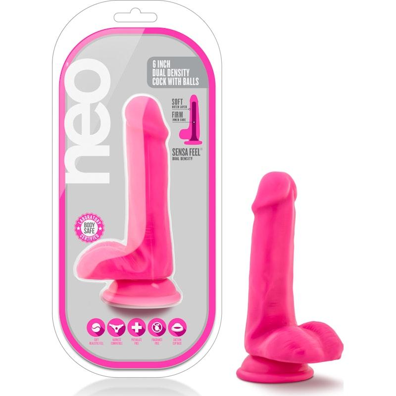 Neo Dual Density Cock With Balls 6in Neon Pink - Pink is backordered and will ship as soon as it is back in stock.