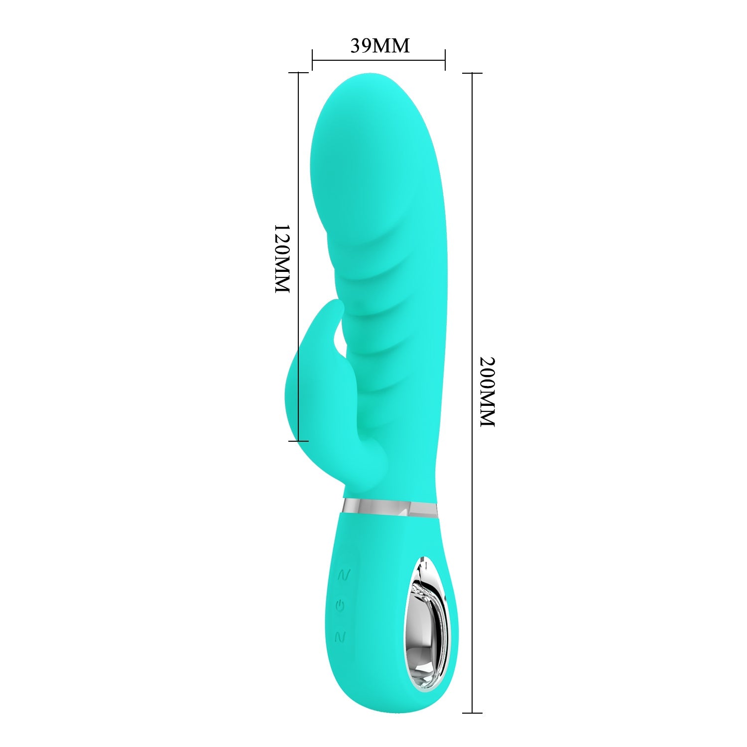 Indulge in the luxurious experience of the Party Up EDWARD Rabbit Vibe, meticulously designed for those who seek both sophistication and peak pleasure. With its sleek teal design and sensual contours, this rabbit vibrator is a must-have for your pleasure repertoire.