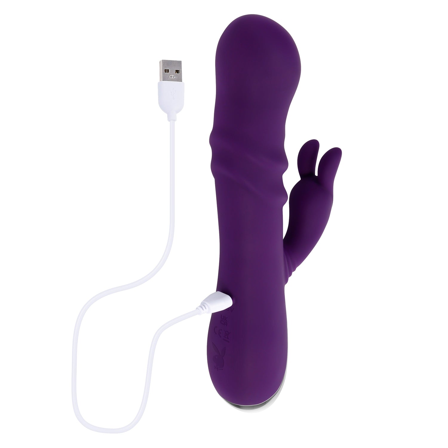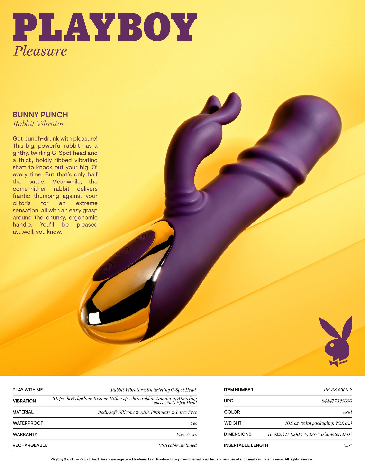 Ignite your senses and discover new dimensions of delight with the Playboy Pleasure BUNNY PUNCH - Purple 24.4 cm USB Rechargeable Twirling Rabbit Vibrator.