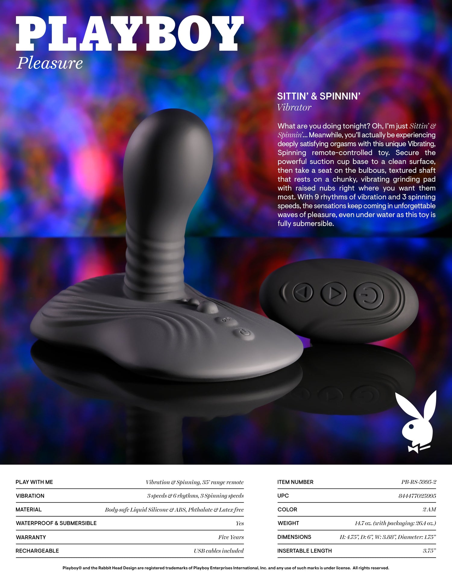 Ready to transform your pleasure experience? Shop now and unlock the secret to unforgettable nights and joyous awakenings with the Playboy Pleasure SITTIN & SPINNIN.