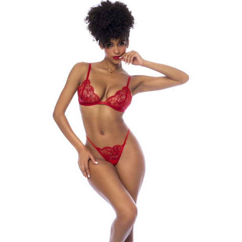 Red 3 Pc Set w/ Bralette, Garter Belt and Thong