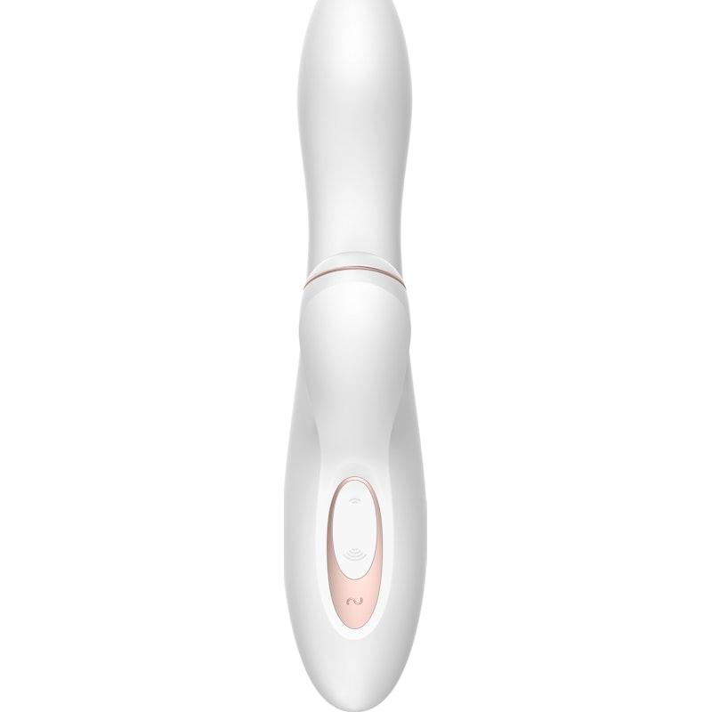 Meanwhile, the clitoral stimulator caresses your love bead with sensual pressure wave stimulation. The round silicone attachment encircles your clitoris as you are brought to a touch-free climax. This gives you a sensation similar to that of oral stimulation: rapid change between suction and pressure is available in 11 intensities - simply use the intuitive controls to switch up and down between settings. A third button controls the vibration setting, enabling countless seductive combinations of settings. The Satisfyer Pro G-Spot is also extremely quiet, although it may well coax a few noises out of you! The waterproof finish means that it is also the ideal bathing companion, inviting you to enjoy sensual pleasures in the shower or bath.