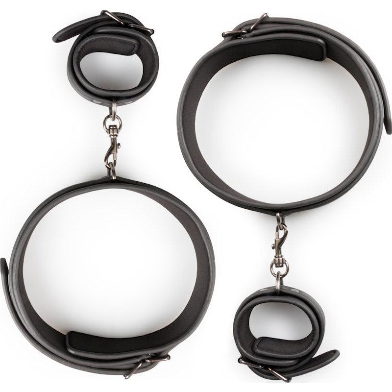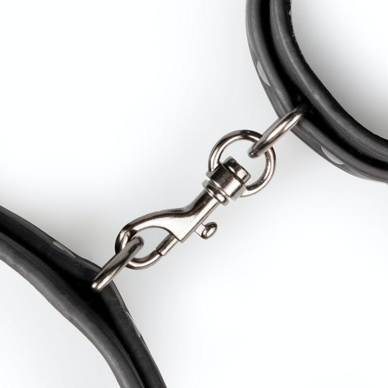 The handcuffs are attached to the thigh cuffs with clip fasteners. This means you can also detach the cuffs and use them separately or in combination with other BDSM toys.