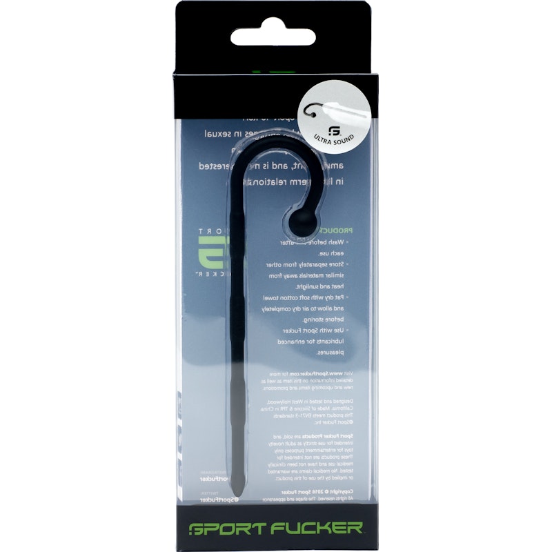 This great plug has three cylindrical ridges slightly raised wider than the shaft. What makes this plug unique is the curved handle that goes over the head of your cock and rests with its ball right on your frenulum glan. This is a great sensation of both internal and a slight external stimulation. Plus, it looks hot to see the handle sticking out, knowing your throbbing member is stuffed with the Ultra Sound.
