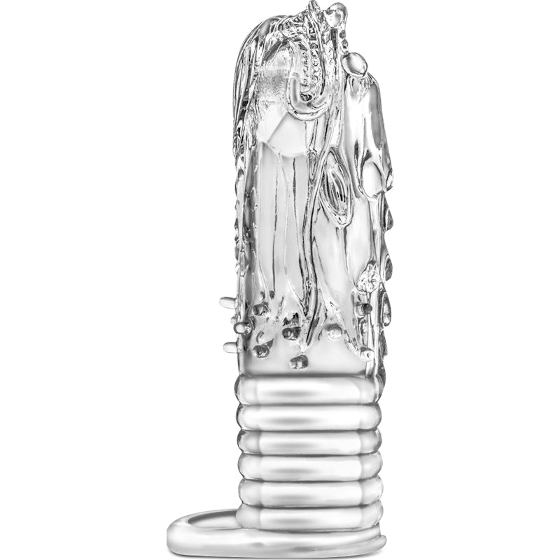 Slip this freaky sleeve over your tool for an unforgettable experience. The head and body of the dragon is meticulously hand sculpted. Ticklers on the belly of the dragon enhances sensations for your partner. Use the strap to cinch your scrotum to aid in delaying ejaculation. Made of Stretchy durable elastomer. The strong stretchy material is skin safe and phthalates free. One size fits most.
