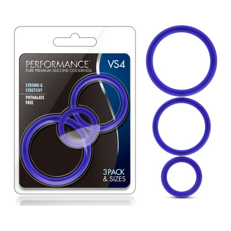 Performance Silicone Cock Ring 3 Pc Set Indigo
