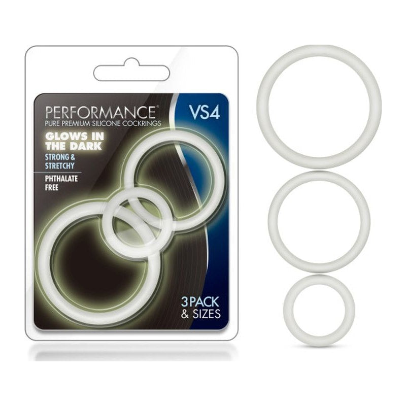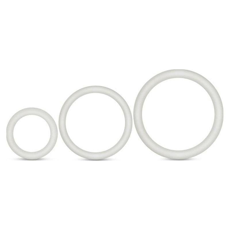 Performance Silicone Cock Ring 3 Pc Set White Glow