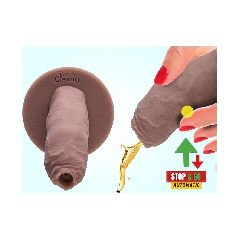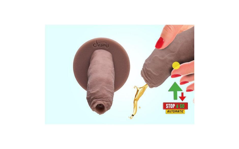 - The flow of urine is started by putting a light pressure on the underside of the ScreenyWeeny, and stopped again immediately by releasing it