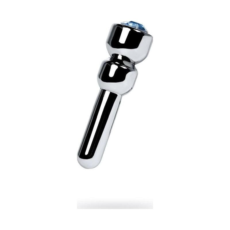 Silver Metal Urethral Plug w Sapphire Rhinestone Small