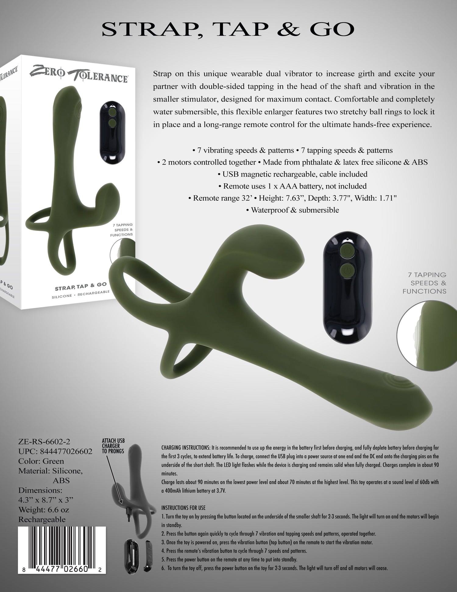 Zero Tolerance STRAP, TAP & GO - Vibrating & Tapping Sleeve & Wireless Remote