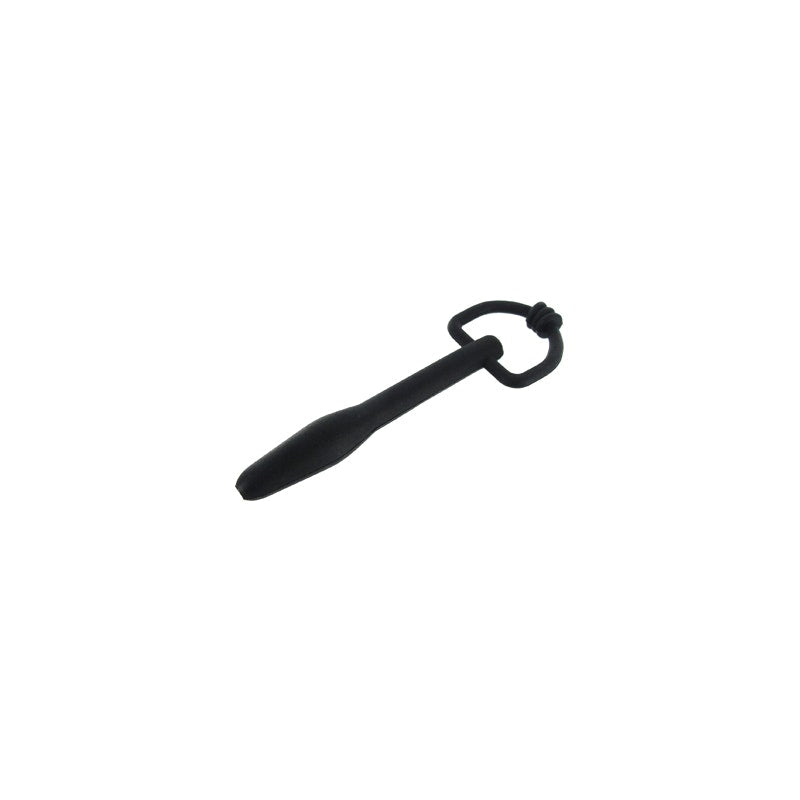 This sexy black penis plug affords you the sensations of urethral play with a material that is flexible and lightweight. The high-quality silicone bends with your body and the D-ring at the end lets you retrieve the plug with ease. A thru-hole leaves this cock toy open at both ends so that it can even be worn during ejaculation or urination.