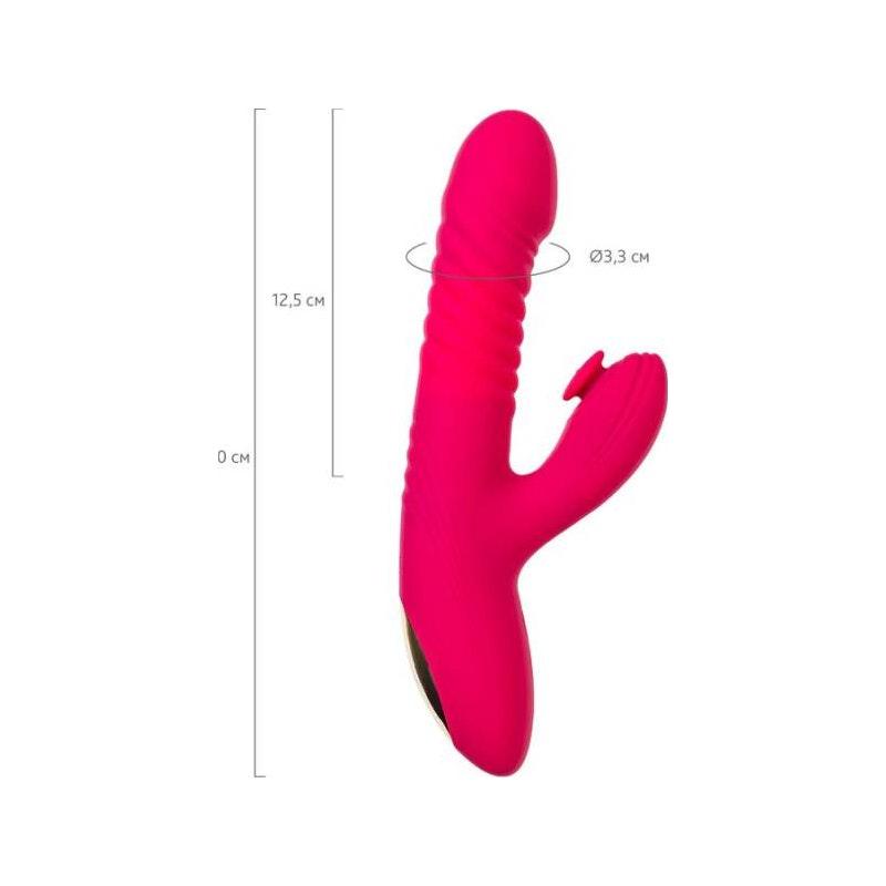 This vibrator has many amazing features. In addition to vibration, it also moves up and down, simulating friction. Also on the clitoral process is a soft embossed pad that vibrates and makes patting movements.