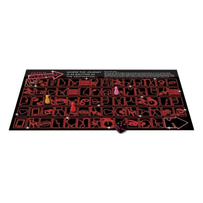 The Path to Pleasure is so much more than a board game, its a creative journey designed to stimulate all your senses. Listen, look, feel, taste and touch as you and your partner experience intimate moments together. Take it in turns to roll the dice and see what your next pleasure experience will be. The square you land on corresponds to a sexy and intimate action designed to surprise and delight your lover. Although this is a time where the journey really is as enjoyable as the destination, the player that first lands on square 69 is in for a delightful treat.