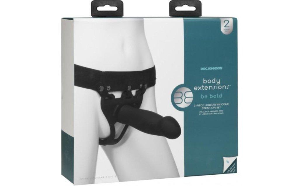 Be Bold 8in Large Dong 2 Pc Hollow Silicone Strap-On Set
