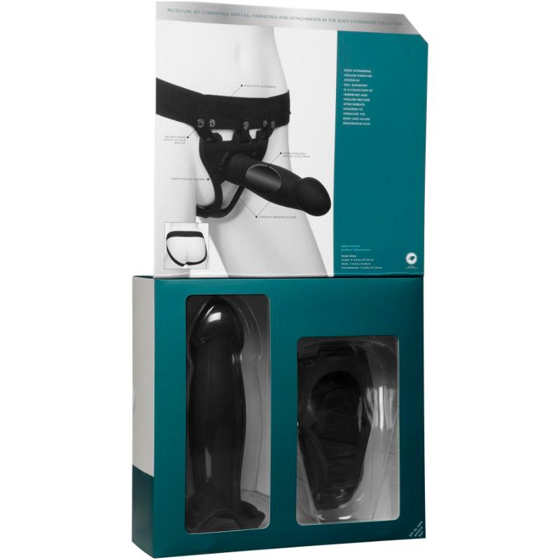 Enjoy the complete adaptability of this set, featuring a hollow strap-on that accommodates any user's anatomy. The set focuses on superior comfort and functionality with a high-quality, stretchable silicone harness. It seamlessly fits waists from 28 inches (71 cm) to 48 inches (121 cm), ensuring a snug and secure fit for a wide range of body types.