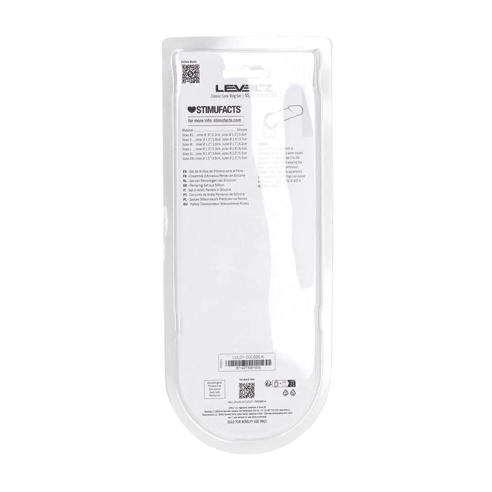 Ready to elevate your intimate moments with Levelz? Add the Levelz Classic Silicone Cock Ring Set Of 6 Sizes Black to your cart and discover the comfort and versatility of six sizes in one sleek set.
