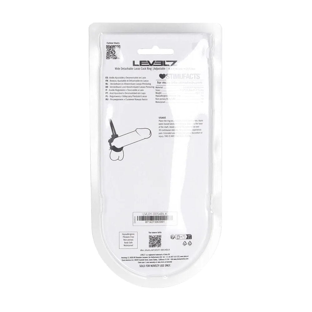 Levelz Wide Detachable Lasso Cock Ring Black Adjustable
